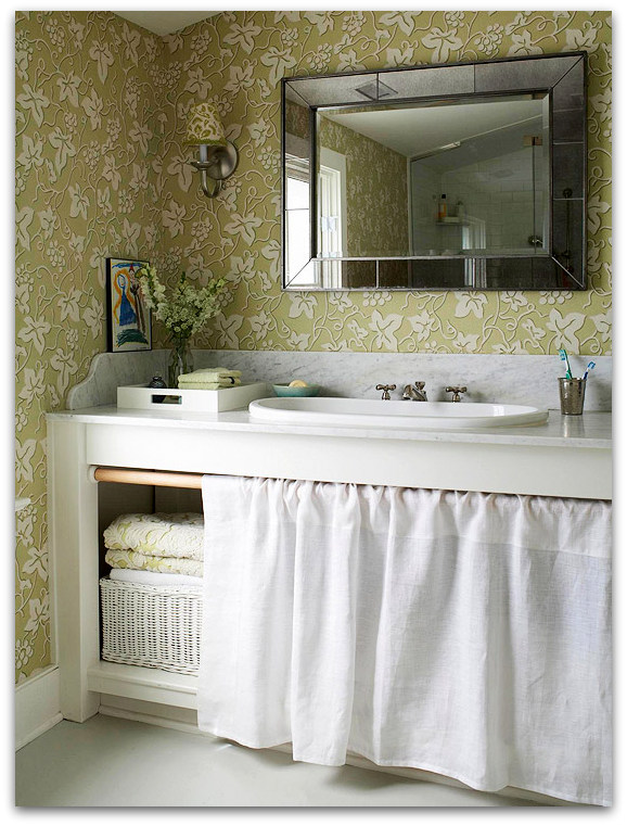 Что касается выкройки, то ваша фантазия — предел. Попробуйте что-нибудь модное, например Suzani, или классическое, например, швейцарское с точками. Держитесь подальше от бархата, если вы обустраиваете ванную комнату с интенсивным движением, хотя в редко используемых гостевых ваннах это подойдет.