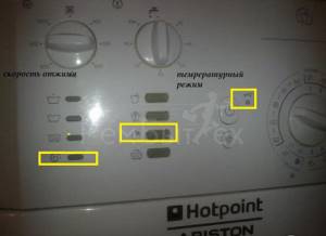 - Лампочка температуры 50° моргает у стиральной машинки Hotpoint-Ariston Aqualtis.